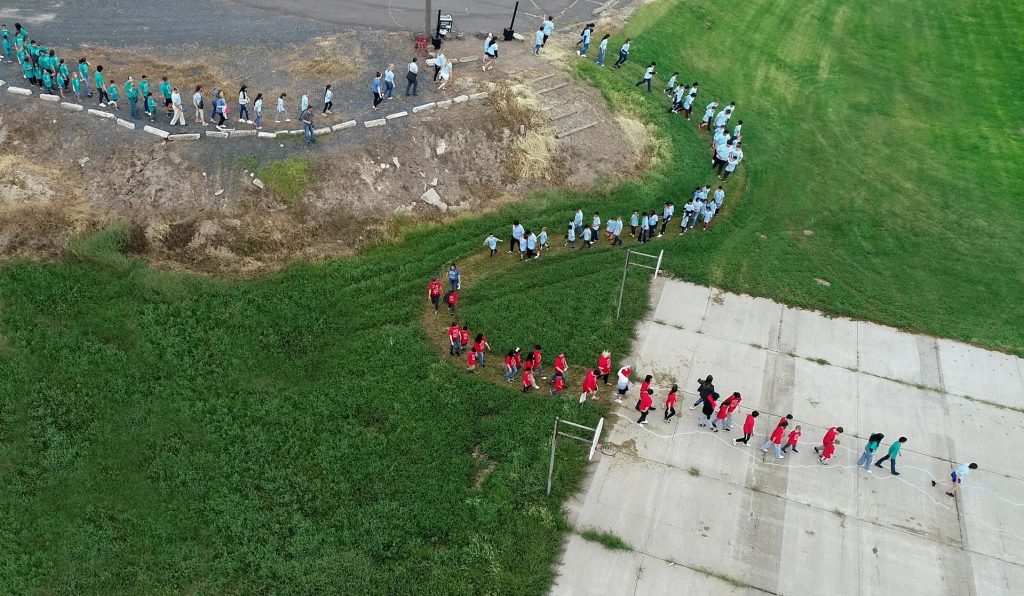 “The performance will be a counterpoint to the very first project we made with students in 2022,” she said of Embodying the River, a performance involving all 300+ students wearing custom-designed T-shirts walking on winding paths created with soccer field paint. “Students remember being part of that original project, and many still have the T-shirts, but they have mostly outgrown them. The kindergarteners are now in 4th grade. The 5th graders are now in high school. They are very different people than when the project started four years ago.”