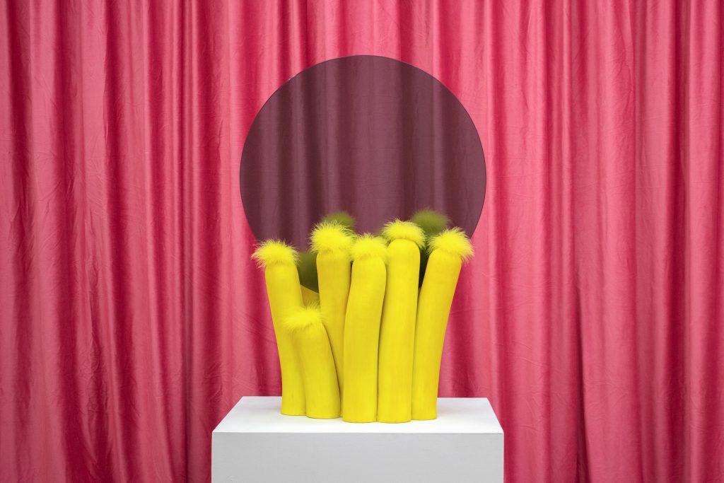 I have another show, Yellow There!, currently on view at the Fine Arts Center in Greenville, SC that will be building on previous work referencing serving coasters. They’re amorphic and agendered forms which are playing around with the word serve and the notion of serving. I really like the objects in the show can be functional, while also occupying different ideas of serving.